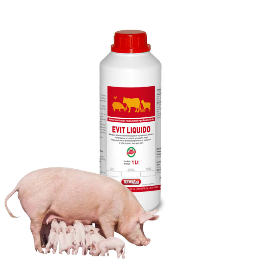 Evit liquido è un mangime dietetico complementare liquido per la preparazione dell’estro e la riproduzione per suini.