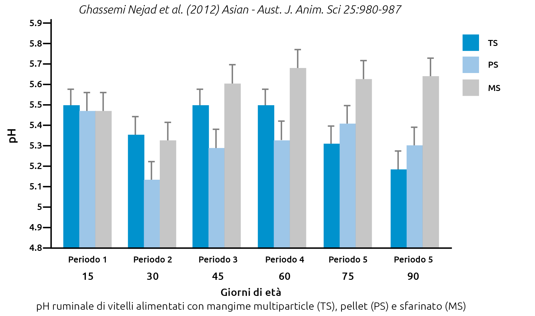 Per quanto riguarda la forma fisica è dimostrato che il pellet da risultati migliore dello sfarinato. Il dibattito resta aperto quando si confronta il pellet con il cosiddetto “multiparticle” che presenta le materie per la maggior parte “a vista” e con granulometria varia. Quest’ultimo sta dando risultati decisamente interessanti sia dal punto di vista dell’ingestione sia degli accrescimenti, ma soprattutto sullo stimolo ruminale e quindi sullo sviluppo delle papille e la composizione degli AGV, nonché sul pH.