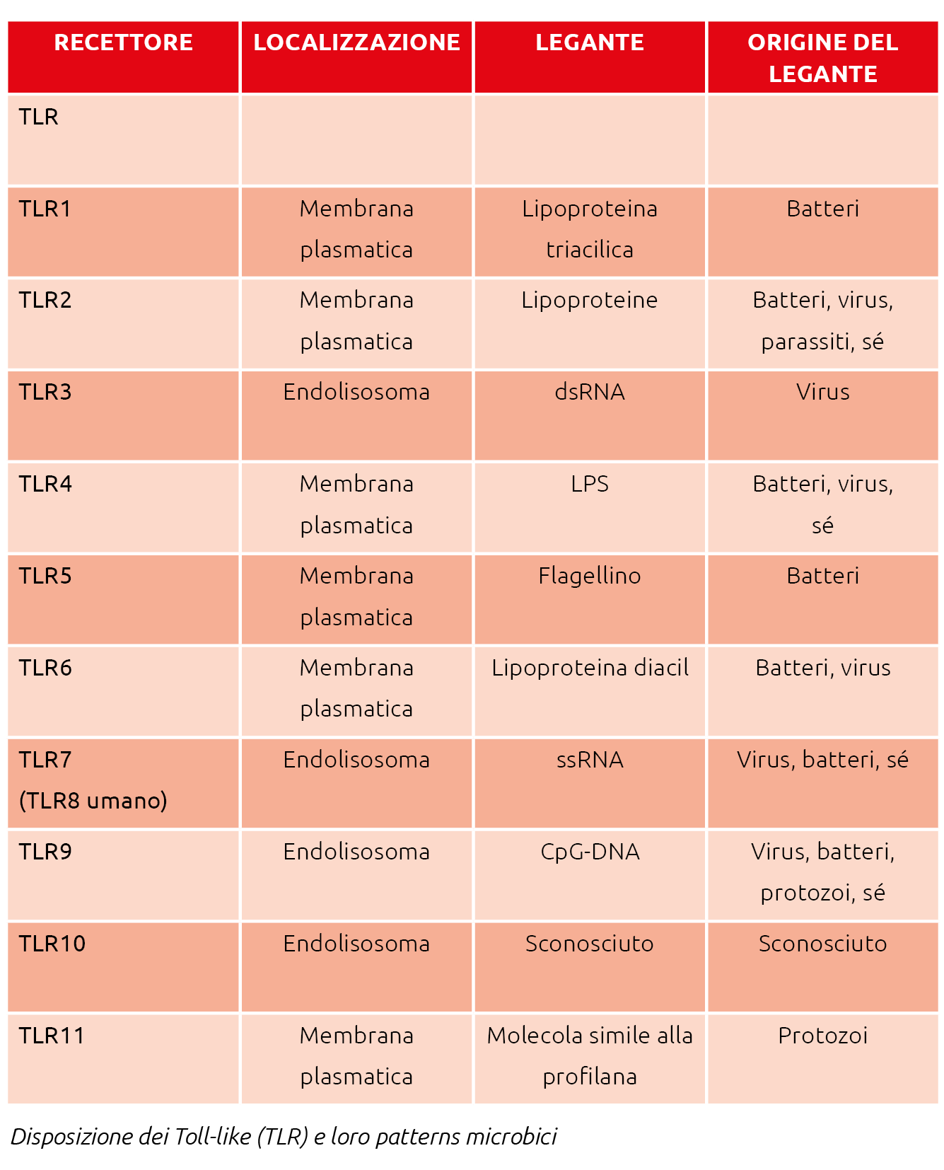 La percezione iniziale dell’infezione è mediata da recettori di riconoscimento che individuano molecole specifiche alle quali rispondono innescando una serie di reazioni conseguenti.